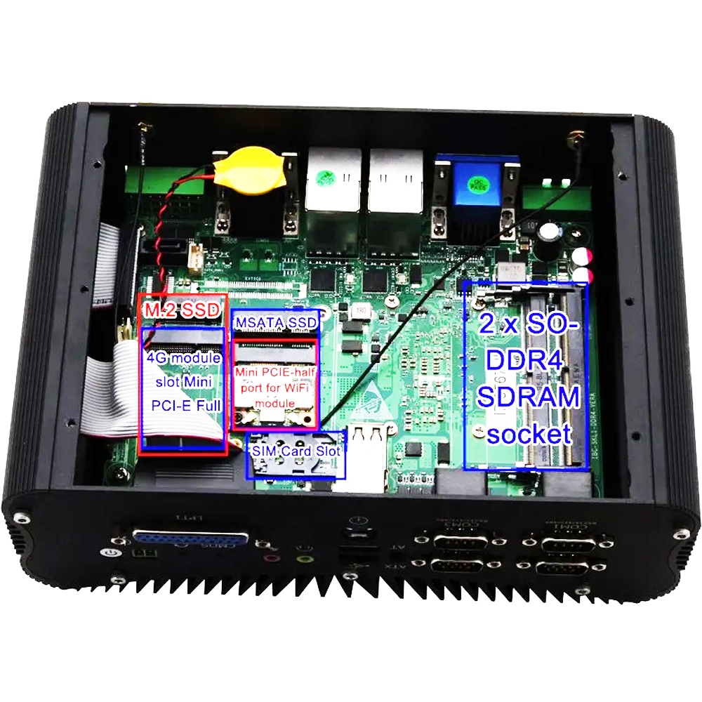 Cổng Sau: 2*Wifi, 1*DC IN, 4*USB3.0, 2*LED, 1*HDMI, 1*VGA, 2*LAN (RJ45), 2*COM, 1*GPIO, 1*2Pin Phoenix terminal power supply input.