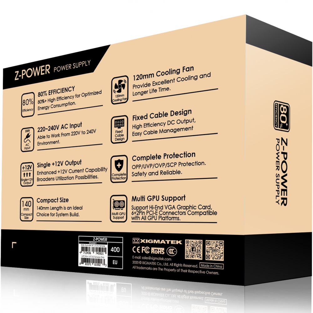 Bộ nguồn này sẽ đáp ứng mọi nhu cầu sử dụng máy cốt lõi của bạn mà không gặp phiền hà hay thách thức nào từ những tính năng đặc biệt phát sinh, đồng bộ phần mềm hay bất cứ trở ngại nào khác. Chỉ cần cắm dây vào mọi linh kiện cần thiết và bạn đã sẵn sàng làm việc. Để có được trải nghiệm làm việc tốt nhất. Bộ nguồn Xigmatek Z-POWER 400 là sự lựa chọn mà bạn khó có thể bỏ qua.