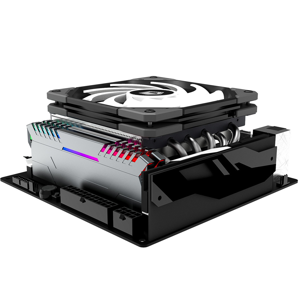 | Tính năng nổi bật | Thiết kế Low-Profile vừa vặn với các main mini-ITX/ HTPC Trang bị fan 120mm slim dày chỉ 15mm bọc cao su chống rung yên tĩnh khi hoạt động Tổng chiều cao 64mm, thiết kế fan siêu mỏng cao 15mm 6 Ống đồng × Ф6mm tăng cường khả năng truyền nhiệt Bề mặt tiếp xúc cấu tạo từ đồng nguyên chất mạ Niken chống ăn mòn cho hiệu năng tốt hơn Trang bị 1 fan 120mm ARGB và 1 fan 90mm |